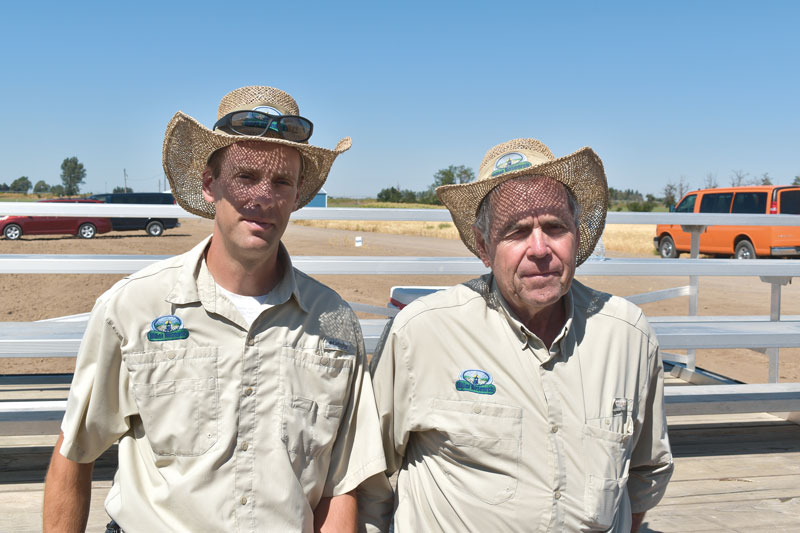 Trent Taysom (left) and Terry Miller with Miller Research answer questions at the company’s field day.